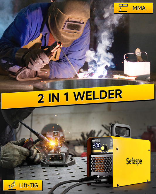 Sefaspe MMA205SE 205A デュアル電圧スティック溶接機 – ポータブル 2 in 1 ARC & リフト TIG 溶接機