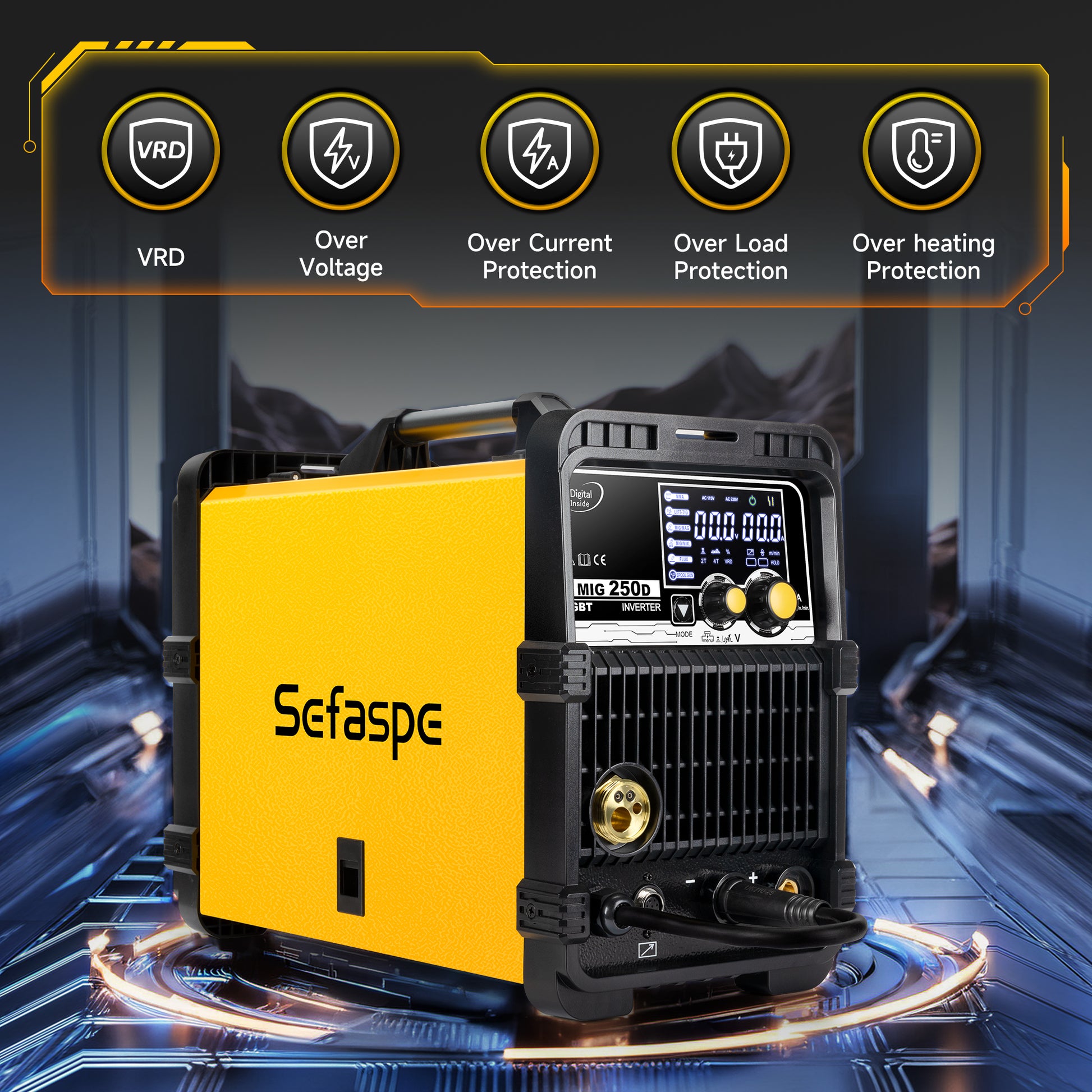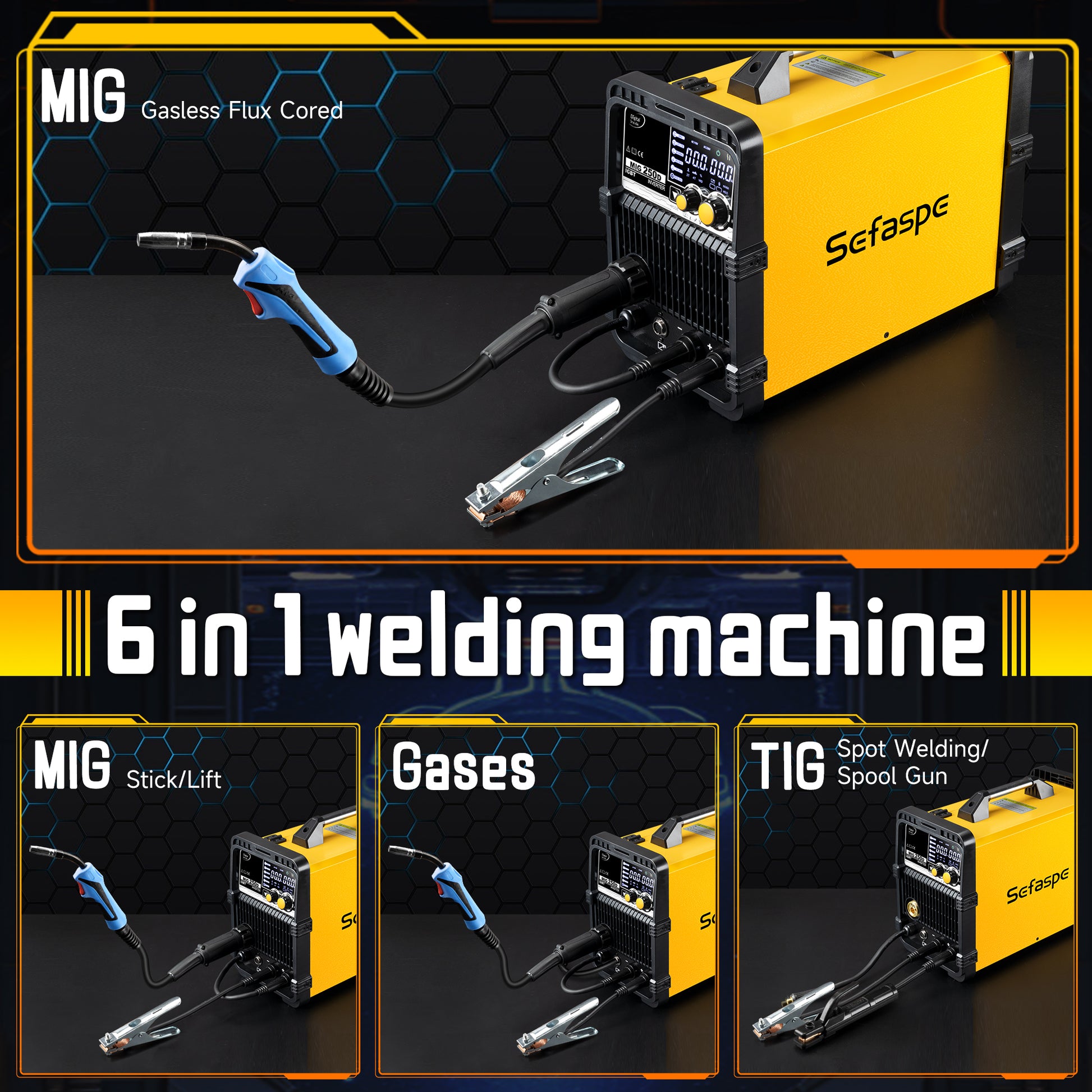 Sefaspe MIG250A 6-in-1 MIG溶接機 – MIG、TIG、フラックスコア、スティック溶接機能搭載のデュアル電圧